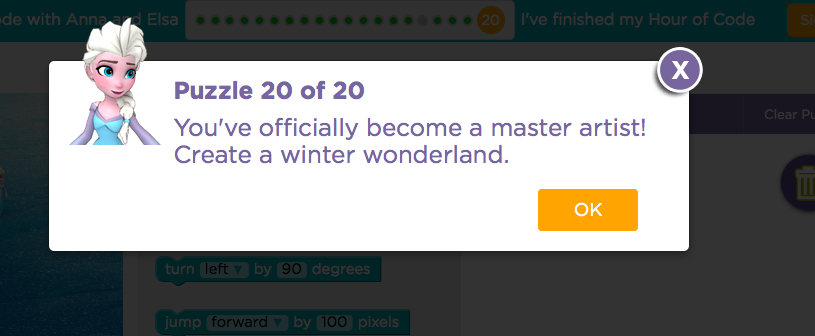 In December there was a lot of press about Hour of Code; they managed to get Barack Obama to write some code (and David Cameron, but does anyone really care?). The site was also really lucky to strike a deal with Disney to be able to use Elsa and Anna from Frozen. As any primary school teacher knows, Frozen is a sure fire way to get the interest of nearly any KS2 girl!