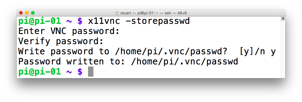 Finally (for the VNC/avahi service at least!), type in the following command to set a password: