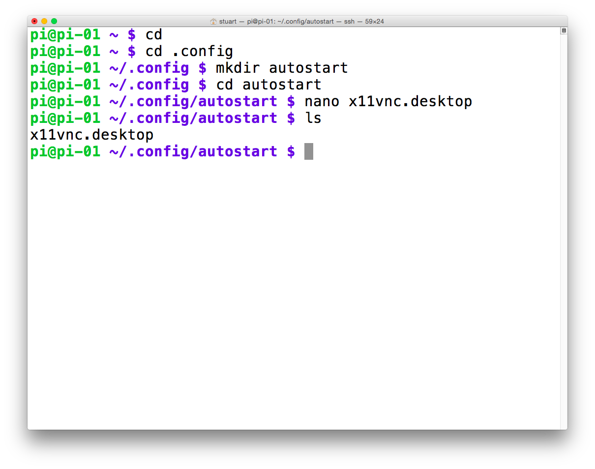 cd cd .config mkdir autostart cd autostart nano x11vnc.desktop